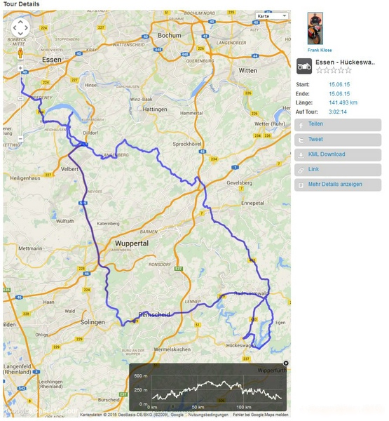Abschalten und genießen. Kleine Runde über Velbert, Mettmann, Hilden, Solingen, Remscheid, Wuppertal und zurück nach Essen.
